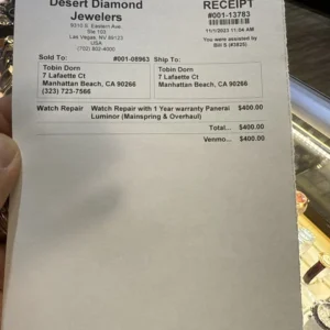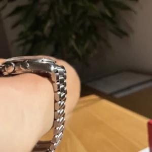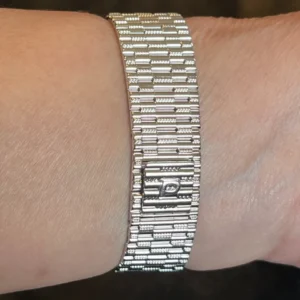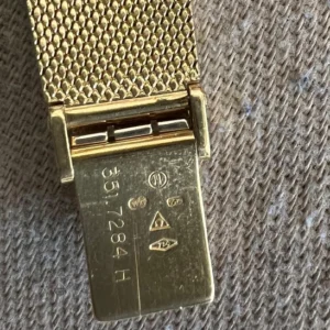 État : Bon état, entretien annuel, traité avec soin. Petite fente d’usure sur le bracelet en cuir, vue intérieure, non visible une fois porté.