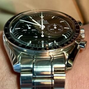Montre Omega Speedmaster Professional Sapphire Sandwich en excellent état, pratiquement neuve, sans aucun défaut. Livrée avec boîte, papiers, cartes de garantie, étiquettes et maillons supplémentaires.