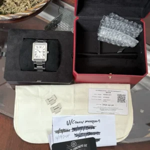 Cette montre est en excellent état, sans aucun signe d’usure apparent. Elle est vendue avec son coffret complet comprenant les boîtes intérieure.. La Santos WSSA0017 incarne avec force le design sport-luxe. Fabriquée en acier inoxydable avec une lunette revêtue d’ADLC, elle allie robustesse et raffinement. Son boîtier carré audacieux mesure environ 43 mm sur 51…