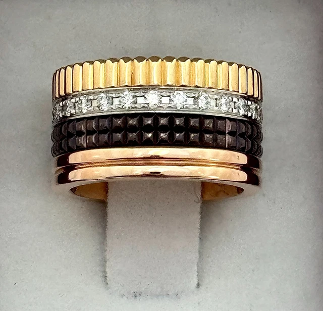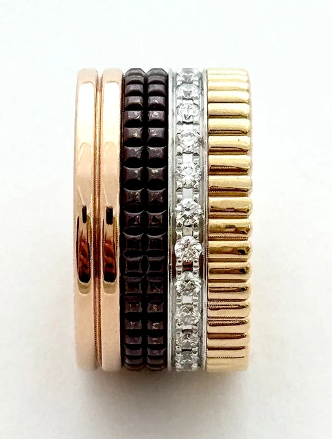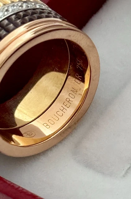 EXCELLENT ÉTAT AUTHENTIQUE BAGUE BOUCHERON LARGE QUATRE CLASSIQUE EN OR 18 CARATS SERTIE DE DIAMANTS NATURELS DE HAUTE QUALITÉ