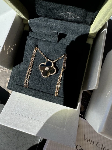 AUTHENTIQUE Pendentif Holiday Van Cleef Arpels 2016 Onyx Diamants Or Rose 18 carats