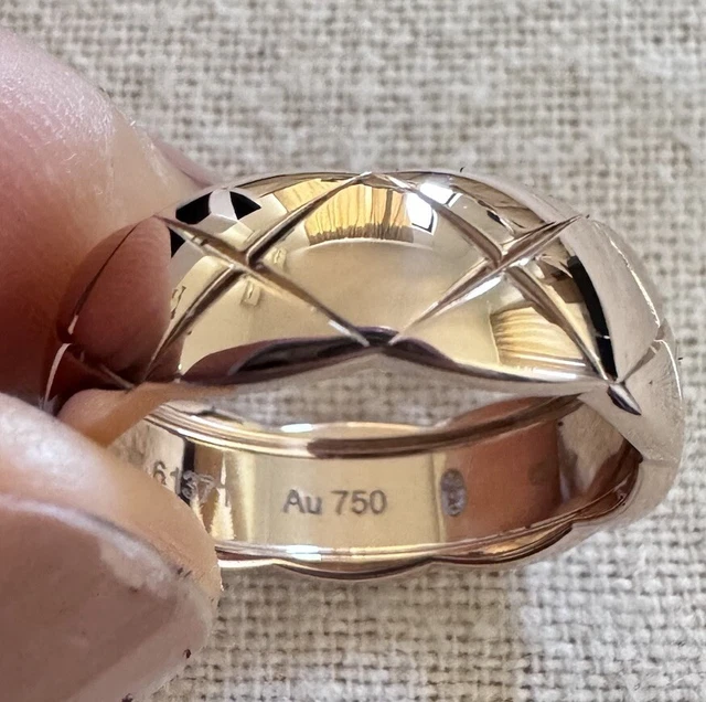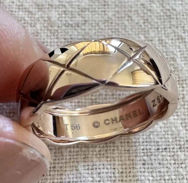 Bague Chanel Coco Crush à motif matelassé en or beige/rose 18 carats, presque neuve.
