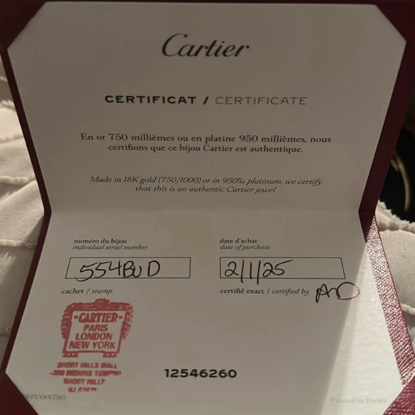 En très léger état d’usage : quelques rayures sur l’or dues à quelques utilisations, mais aucune rayure profonde. Possibilité de polissage gratuit chez Cartier 🙂