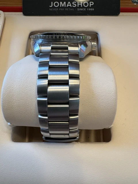 | Caractéristiques | Aiguilles lumineuses, Chronomètre, Indicateur de date, Résistant aux magnétismes, Verre saphir, Lunette tournante |