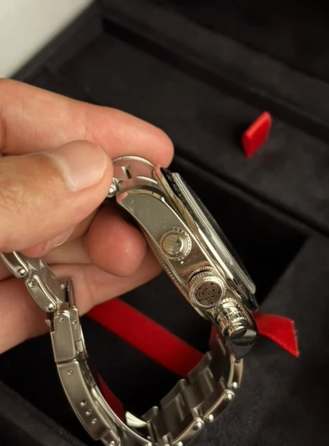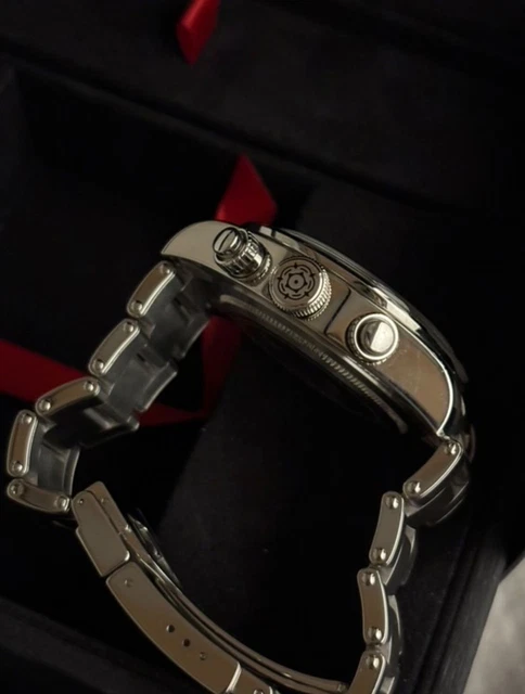 Cette montre est en bon état et est livrée dans son coffret et ses papiers. Elle est globalement en bon état, mais présente quelques marques discrètes. Elle est parfaitement à l’heure et ne présente aucun problème mécanique. N’hésitez pas à nous contacter pour toute question.