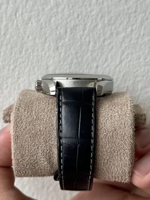 ÉTAT : Excellent état. Veuillez consulter les photos détaillées sous tous les angles pour apprécier l’état exact de la montre. Comme illustré sur la dernière photo, l’intérieur en cuir de l’écrin est légèrement endommagé.